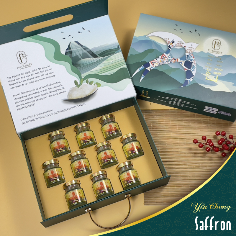 Hộp Lạc Hồng 10 Hũ Yến Chưng Thượng Hạng Saffron 1380mg là một món quà sang trọng và bổ dưỡng, phù hợp để tặng cho nhiều đối tượng khác nhau. Dưới đây là một số gợi ý của Putanest: