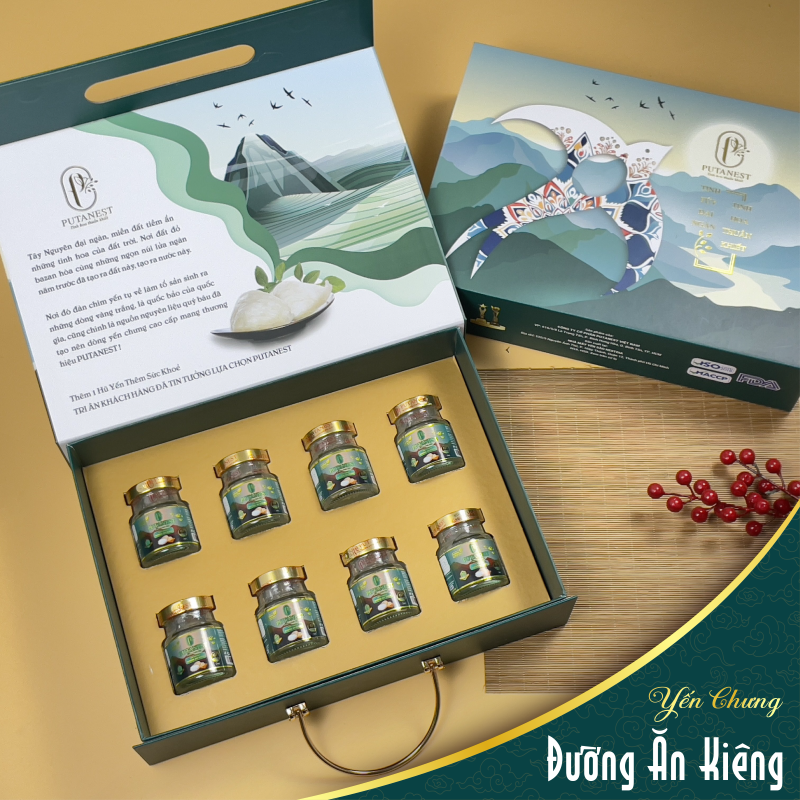 Hộp Lạc Hồng 8 Hũ Yến Chưng Thượng Hạng là một món quà sang  trọng và bổ dưỡng, phù hợp để tặng cho nhiều đối tượng khác nhau. Dưới đây là một số gợi ý của Putanest về Hộp Lạc Hồng 8 Hũ Yến Chưng Thượng Hạng Đường Ăn Kiêng 1380mg: