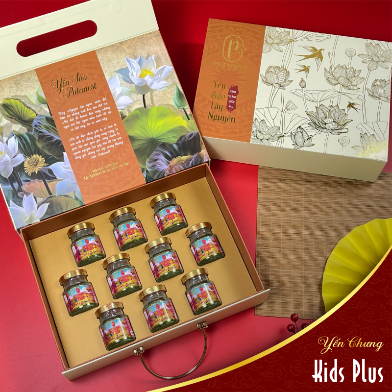 Hộp Sen Vàng 10 Hũ Yến Chưng Thượng Hạng Kids Plus 1380mg là một món quà sang trọng và bổ dưỡng, phù hợp để tặng cho nhiều đối tượng khác nhau. Dưới đây là một số gợi ý của Putanest: